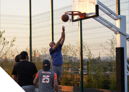 cuenta con canchas de fútbol, básquetbol, voleibol, pádel, una pista de jogging y un muro de escalada